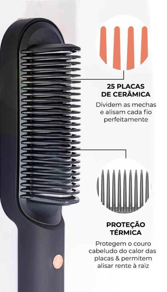 2- Demora muito para esquentar? Não! Em menos de 2 minutos a escova alisadora está pronta para o uso, é super prática e funcional.